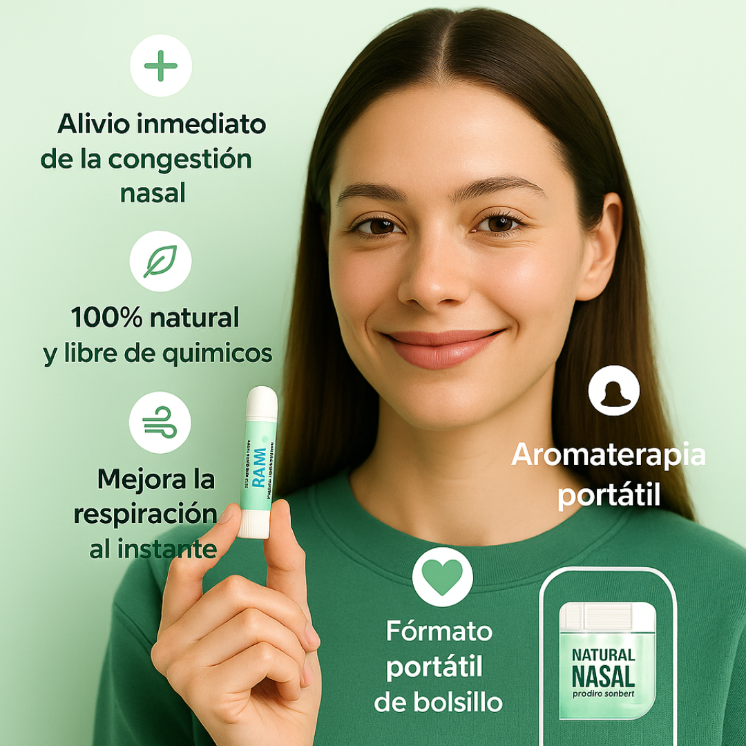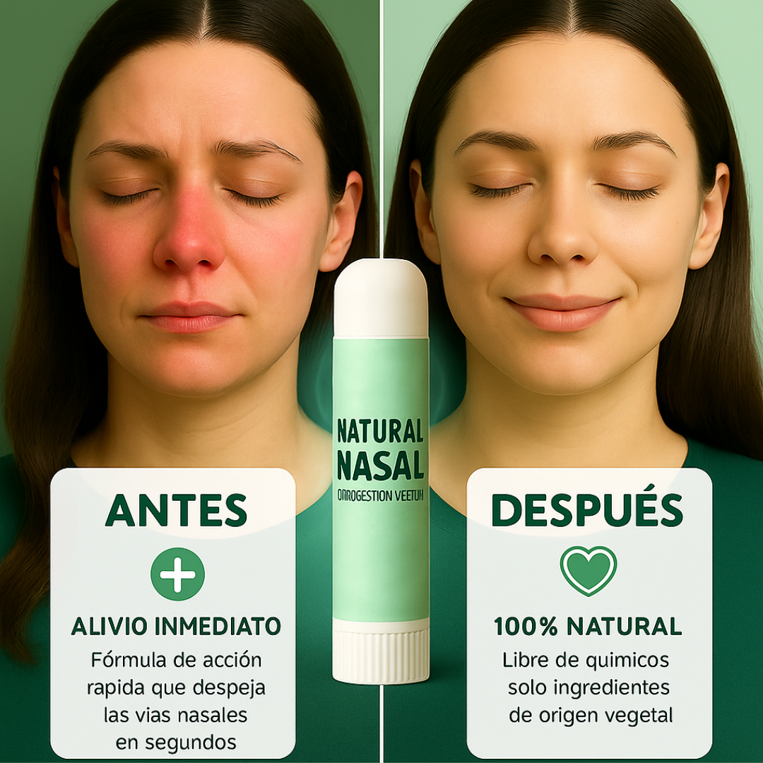 Natural Nasal es el inhalador terapéutico que alivia tu congestión nasal al instante. Con su fórmula 100% natural, mejora tu respiración y reduce la inflamación de las vías nasales desde el primer uso. ¡Recupera tu libertad para respirar y disfruta de una vida más fresca y activa!